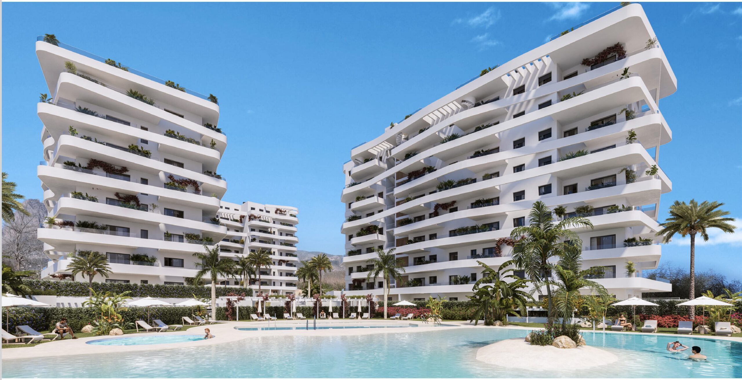 Privé urbanisatie met moderne appartementen met in één, twee of drie slaapkamers en één of twee badkamers in Villlajoyosa.