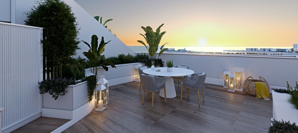 Een avant-gardistisch designgebouw, met appartementen met één, twee, drie of vier slaapkamers, een fitnessruimte en een ongelooflijk dakterras omgebouwd tot een chill-outterras met een infinity pool, zodat u van bovenaf kunt genieten van een aangename duik terwijl u geniet van ongelooflijke uitzichten over de zee en de horizon van Alicante.