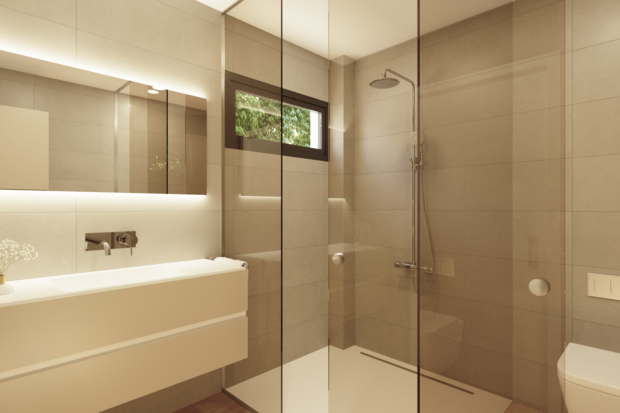 Minimaal geschakelde villa’s met drie verdiepingen (kelder, begane grond en eerste verdieping), privé parkeerplaats buiten, privé zwembad met douche, binnen patio, terras, solarium en berging. De woningen zijn verdeeld in percelen die variëren van 380 tot 400 m2 en zijn gericht op de beste oriëntatie, met frontlinie uitzicht op de golfbaan.