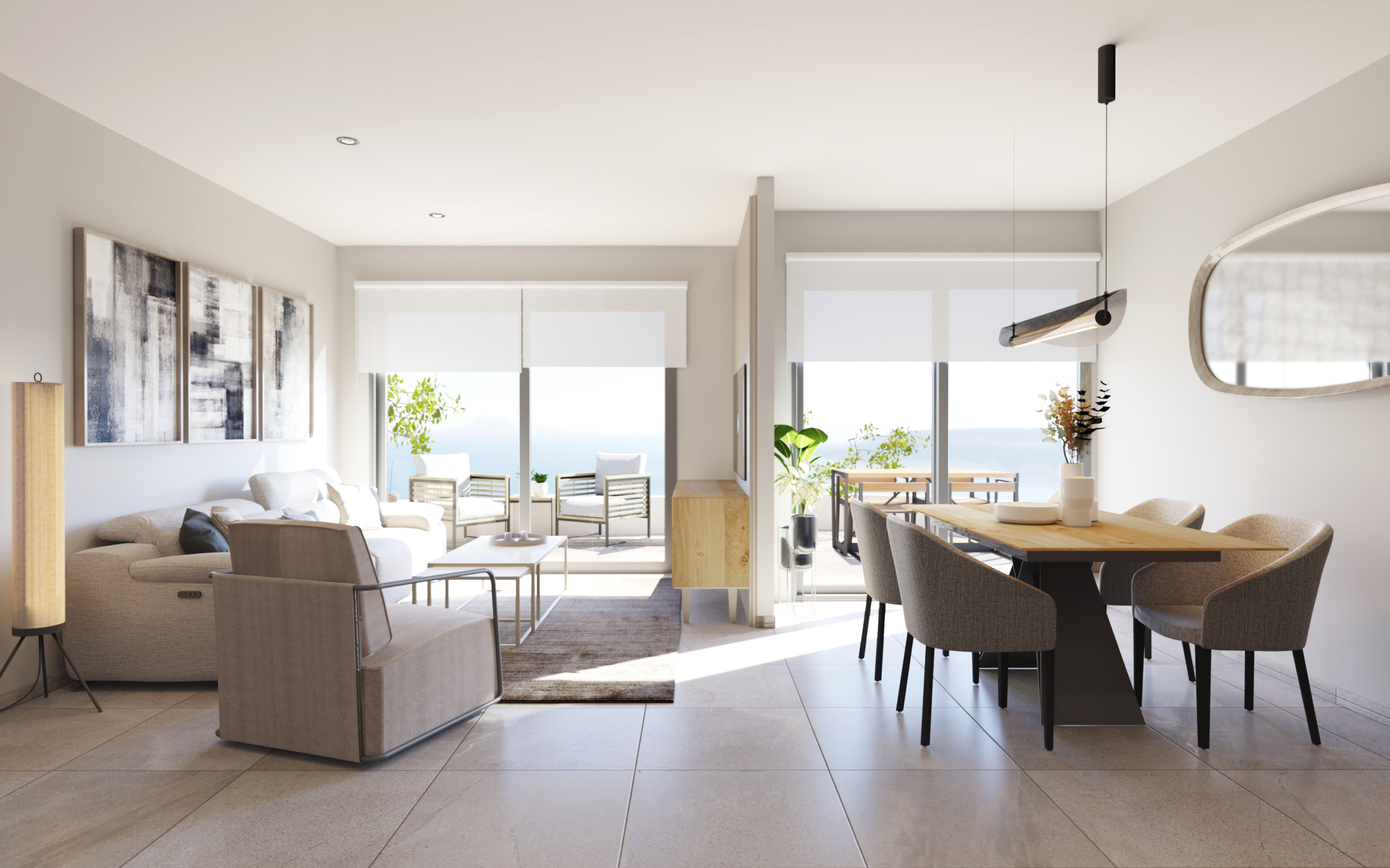 Appartementen met twee en drie slaapkamers en twee badkamers, allemaal met terras, en enkelen op de begane grond met een tuin.