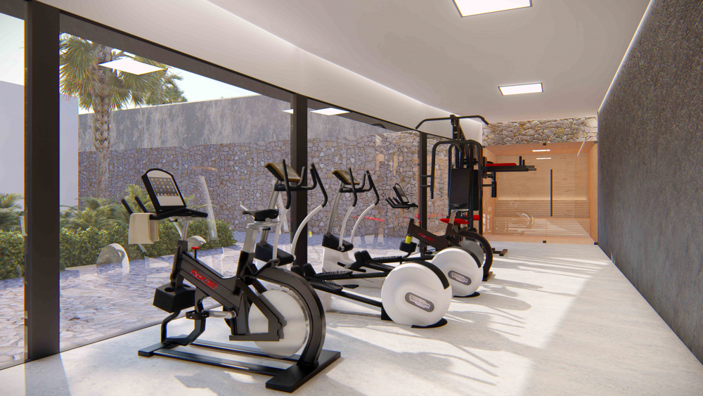 De gemeenschappelijke groene tuinen beschikken over een binnen- en buitenzwembad (infinity), Spa, sportschool en nog veel meer.