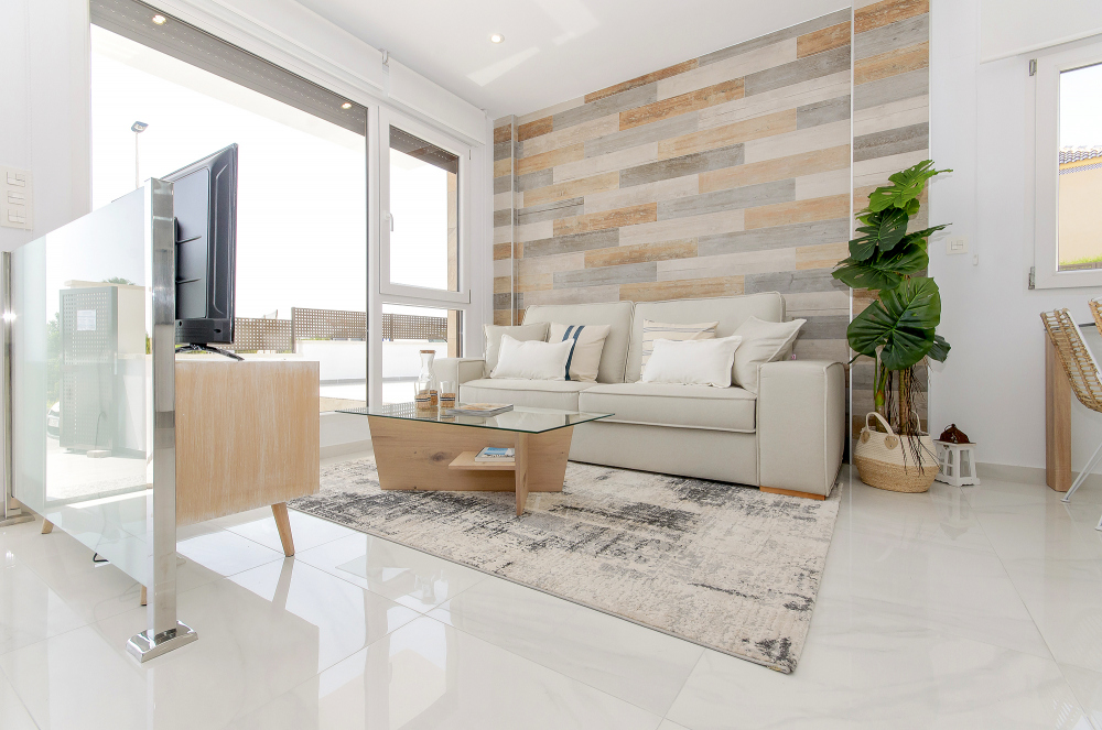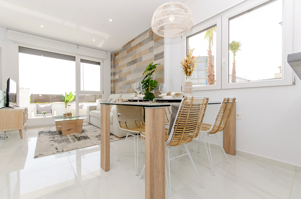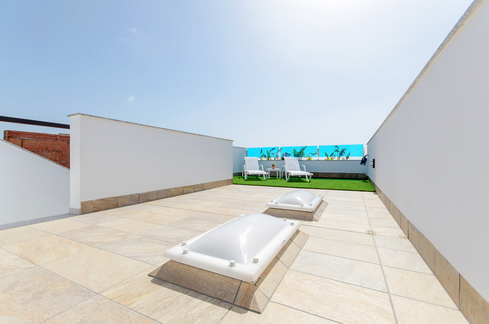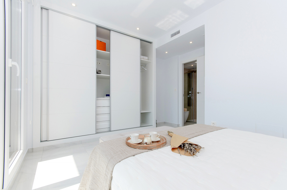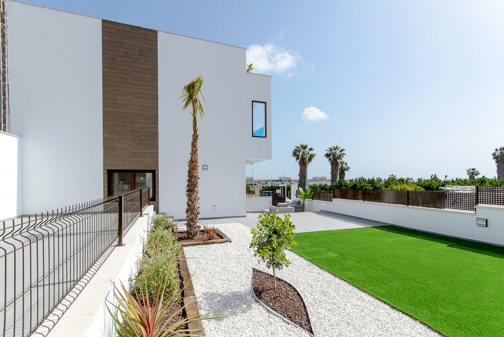 De kwaliteit en afwerking van deze nieuwbouwwoningen zijn uitstekend. Standaard uitgerust met automatische zonwering in de woonkamer en slaapkamers, pre-installatie van airconditioning via kanalen, Hydro-massagekolom in de grote badkamer, buiten- en binnenverlichting, doucheschermen in badkamers en een pakket van elektrische apparatuur in de keuken.