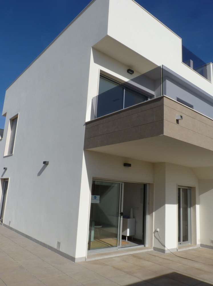 De woningen op de begane grond hebben een tuin en een patio, terwijl de woningen op de bovenste verdieping een terras en een solarium hebben.