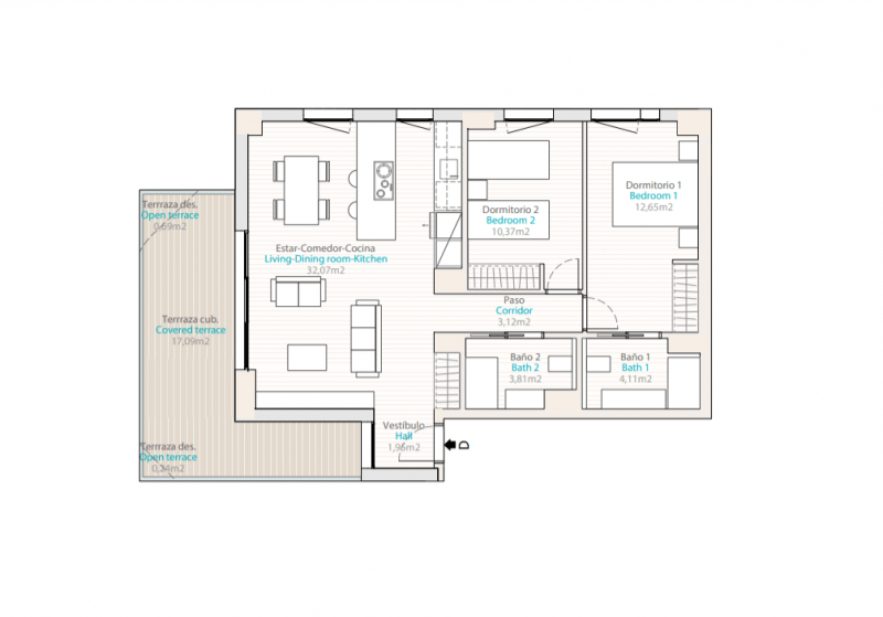 De woningen beschikken over 1, 2 of 3 slaapkamers, 1 of 2 badkamers, ruime living/eetkamer, open keuken. Ruime terrassen waar u kunt genieten van het prachtige uitzicht en van de zonsopgang.