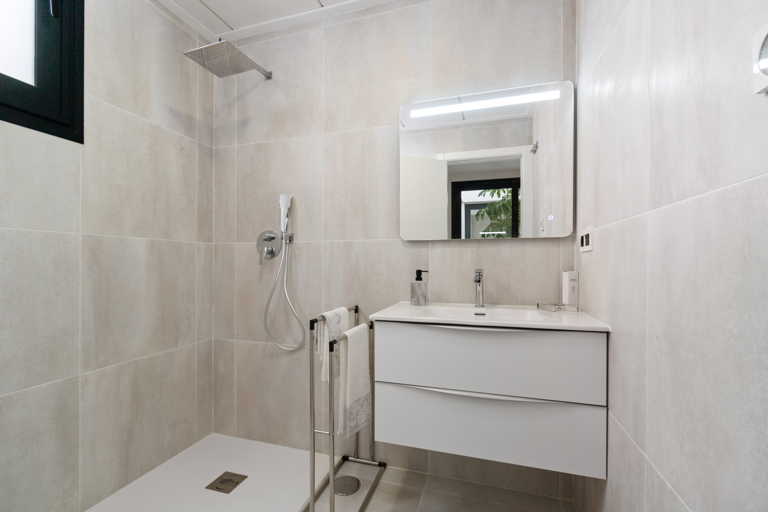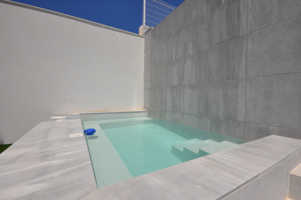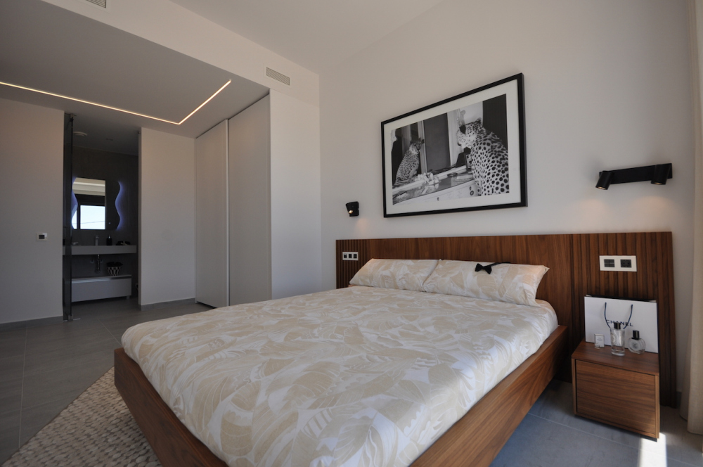 Alle slaapkamers beschikken over inbouwkasten, complete badkamers met vloerverwarming, infinity zwembad, open keuken en voorinstallatie airco.
