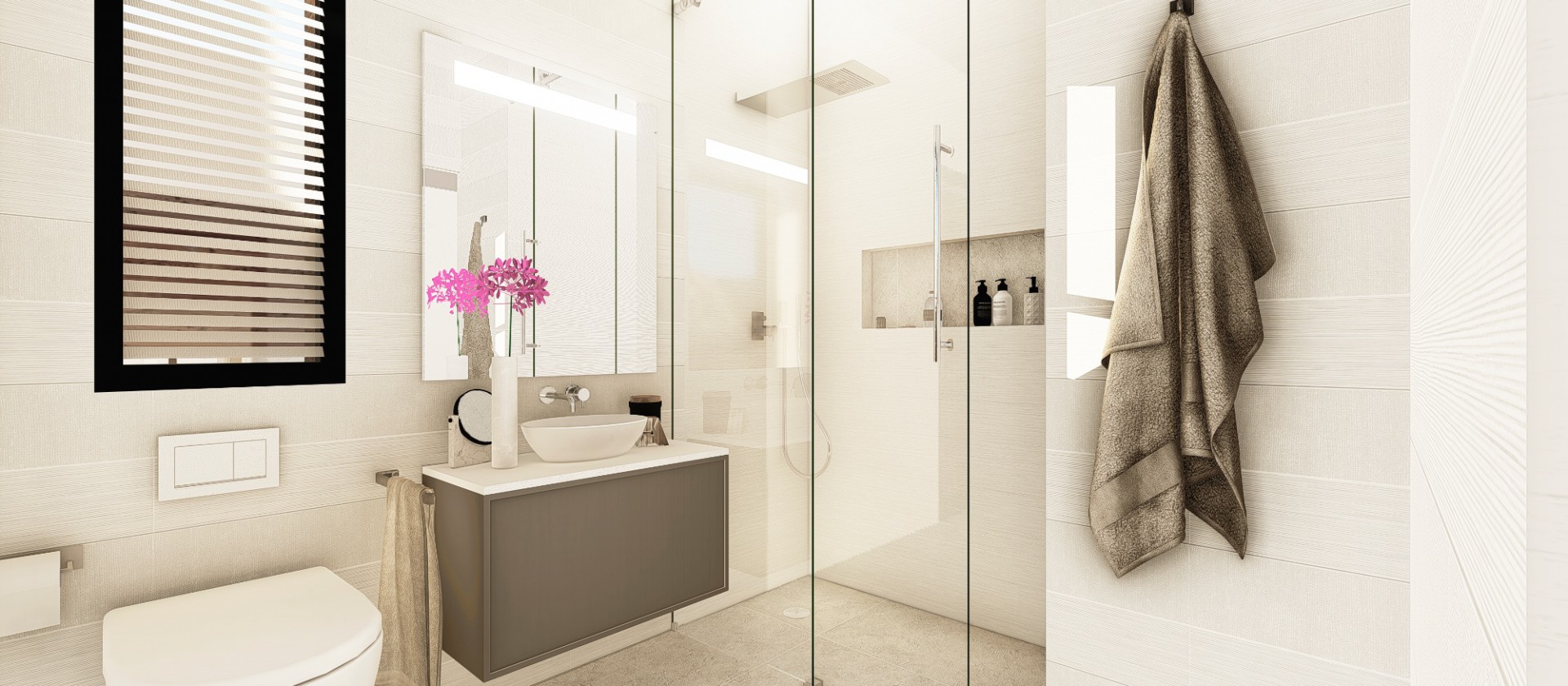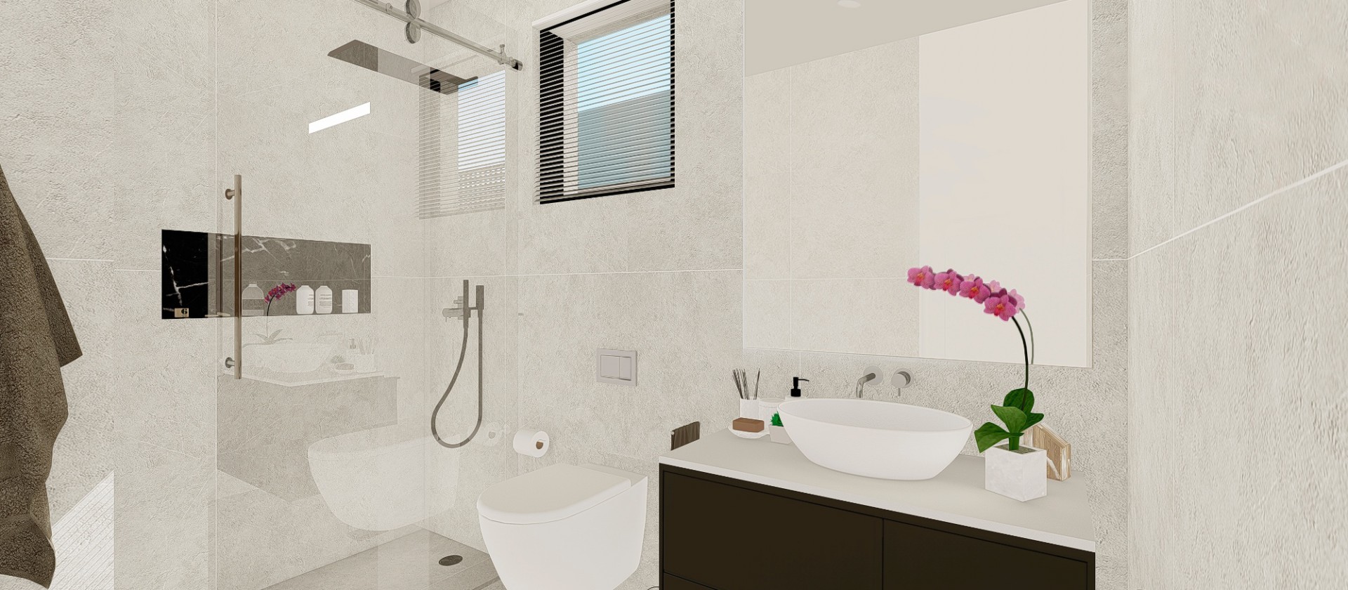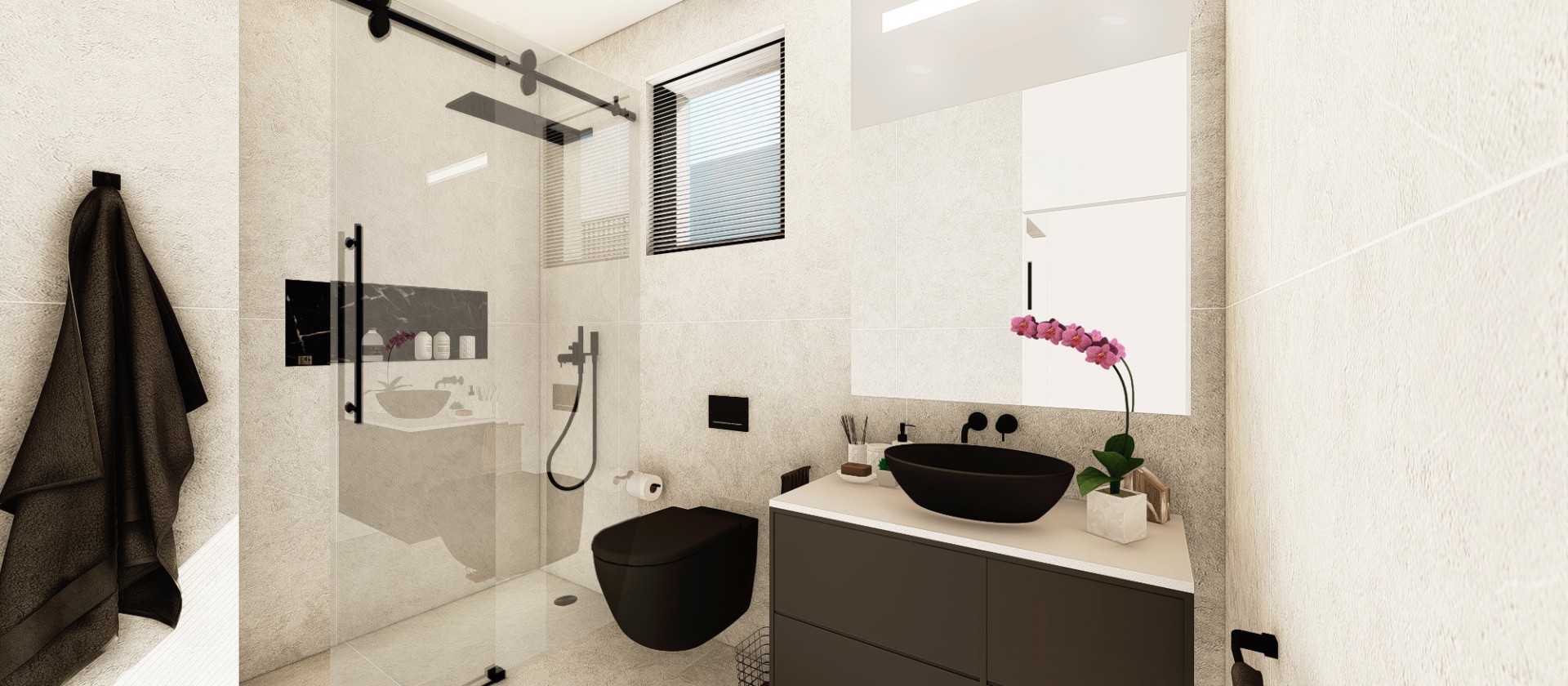 De slaapkamers zijn ruim en licht en beschikken over een klein terras. De badkamers zijn modern van stijl, uitgevoerd in uitstekende kwaliteitsmaterialen en worden compleet opgeleverd met wastafel, badkamermeubel, spiegel en douchescherm.